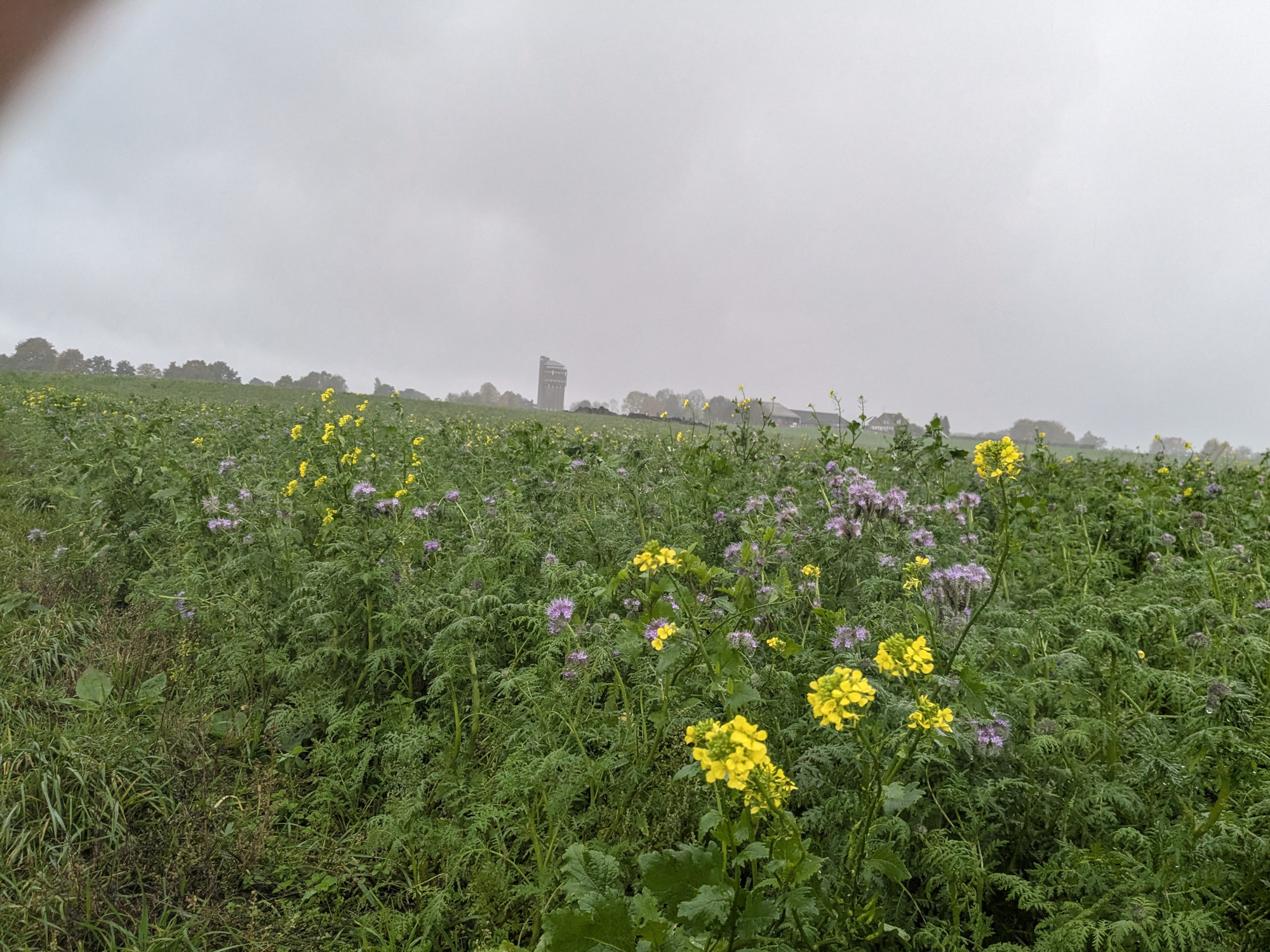De oude watertoren bij Schimmert doemt op in de buien. Een bijzonder contrast met de fleurige kleurige bloemetjes op de voorgrond. In de regen lopen we Schimmert binnen, waar we een groepje kinderen en twee begeleidende heren zien komen aanlopen. Ze hebben een vraag. Ze zitten bij Jong Nederland, een padvinderclub, en vragen of wij ook aliens hebben gezien, en of we dat voor een opdracht van hun op video mogen verklaren. Prima. Ondanks de regen hebben zowel kids als begeleiders de grootste lol. Na Schimmert volgt er een prachtig pad langs de Watervalderbeek. Terwijl we in de richting van de zon lopen, doet die zo zijn best om nog net eventjes door te breken voordat hij over een uurtje onder zal gaan.