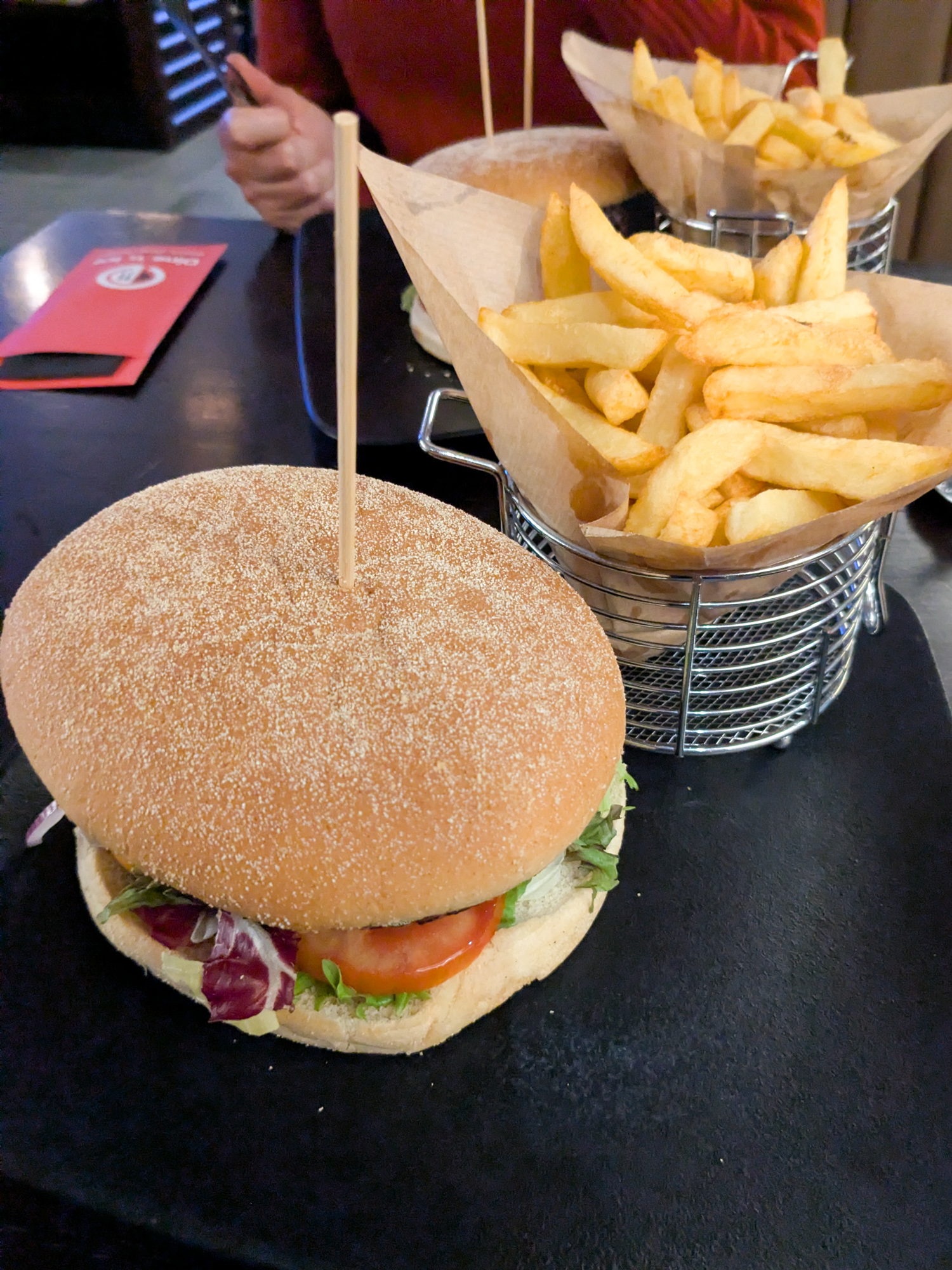 Na een lekker warme douche lopen we het dorpje in voor een warme maaltijd. Bij Dine&Ice bestellen we een welverdiende burger met frietjes. Wat een dag was dit. Niet eerder hadden we zo veel regen en zulke doorweekte kleding en schoenen. Bij terugkomst op de kamer hangen we de spullen opnieuw goed uit en zijn we maar wat blij met de grote handdoekradiator in de riante badkamer. Hopelijk is het voor morgen droog.