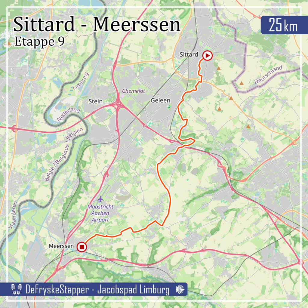 De route van deze 9e etappe op het Jacobspad Limburg loopt via: