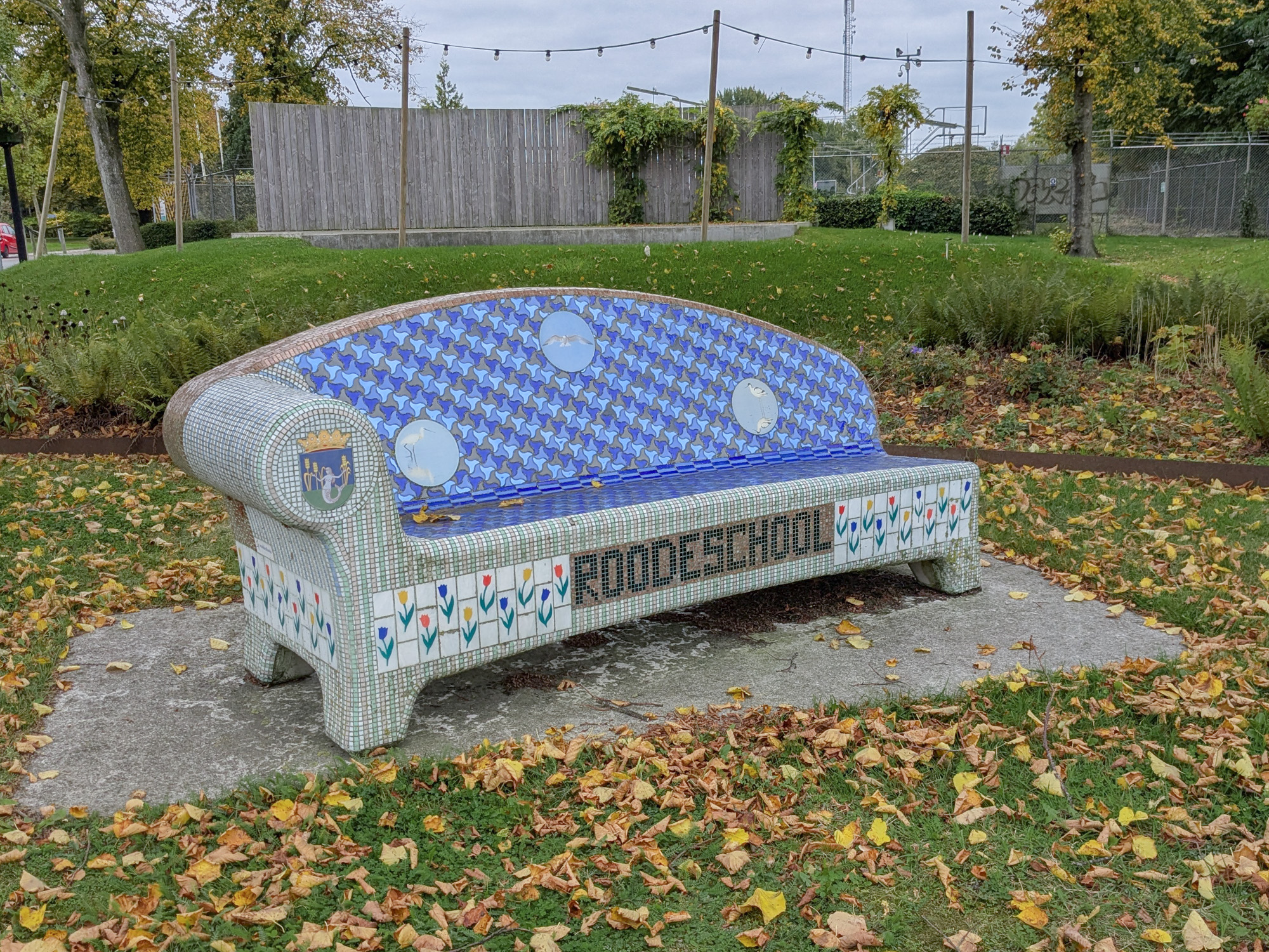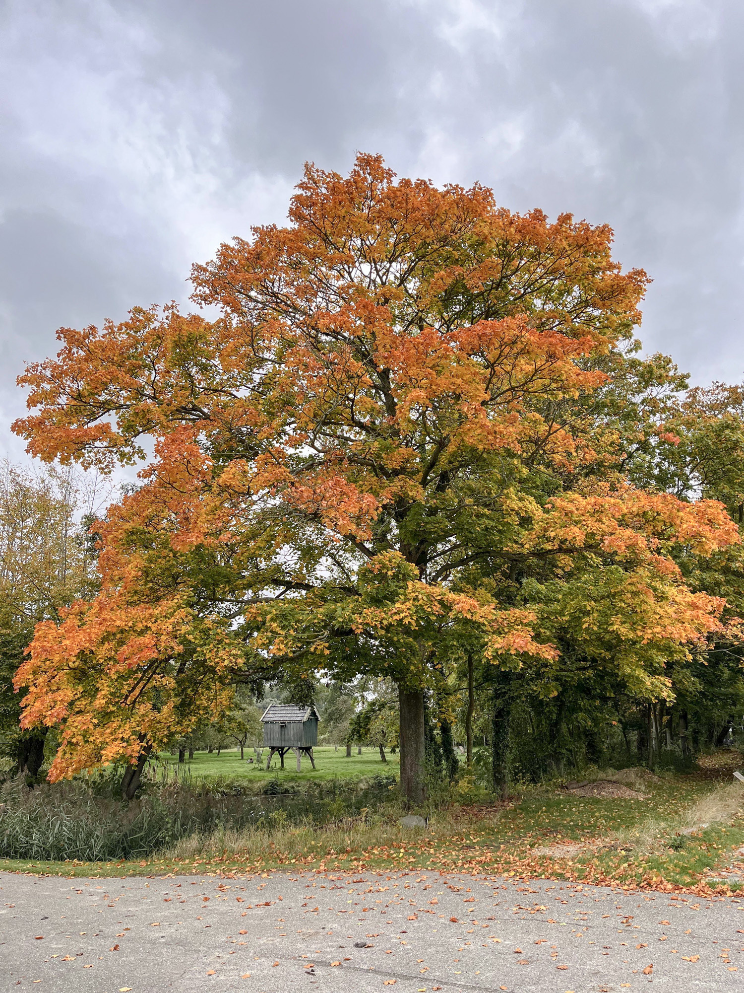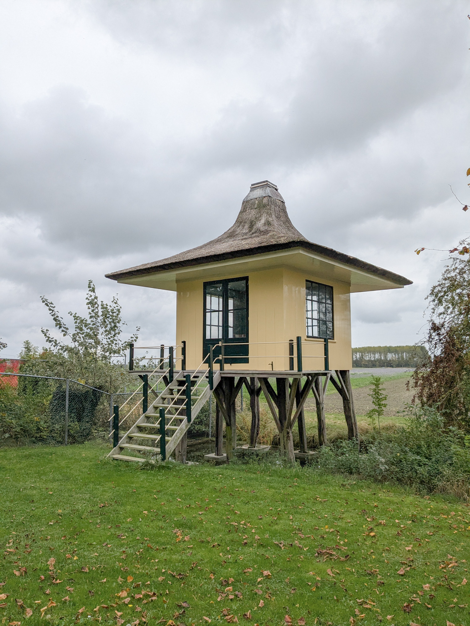 Wij stappen op de fiets en rijden in een dik half uur naar de Mariakerk net onder Uithuizermeeden. De fietsen zijn we in de stalling bij de kerk, en dan kan de wandeling beginnen. Het eerste stukje loopt de route een stuk terug richting de Rensumaborg. Drie weken geleden was het hier nog behoorlijk regenachtig. Nu hebben we er prima rustig najaarsweer bij. Net na het spoor slaan we rechtsaf en lopen via de achterkant van het station een stukje centrum door.