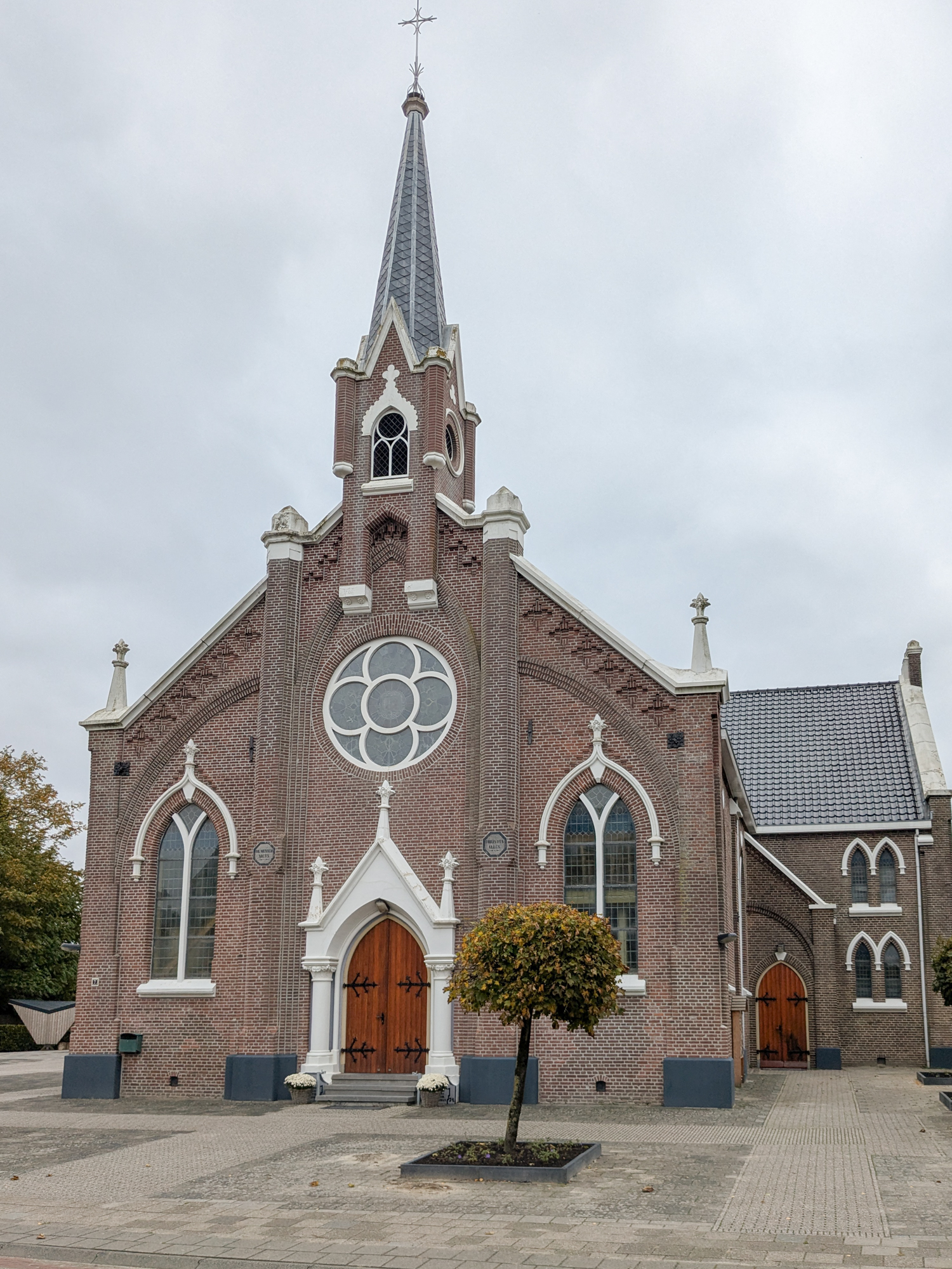 Via ’t Zandt gaat de route weer oostwaarts en komen we een stuk dwars door de weilanden te lopen. We passeerden net nog een viertal pauzerende Ziltepadters, waarvan ééntje met rollator. Die wensen we alvast veel succes als die hier ook langs willen. De route door de weilanden komt via een klein bruggetje aan bij het dorpje Godlinze, wat duidelijk hoger op een terp/wierde ligt. De route loopt het dorpje in tot aan de kerk. Aan de steensoorten en opbouw te zien staan de oudste delen hier al even. Bij thuiskomst blijkt volgens de website dat de eerste delen al voor 1200 zijn gebouwd, en door de eeuwen heen diverse uitbreiding en restauraties hebben meegemaakt.