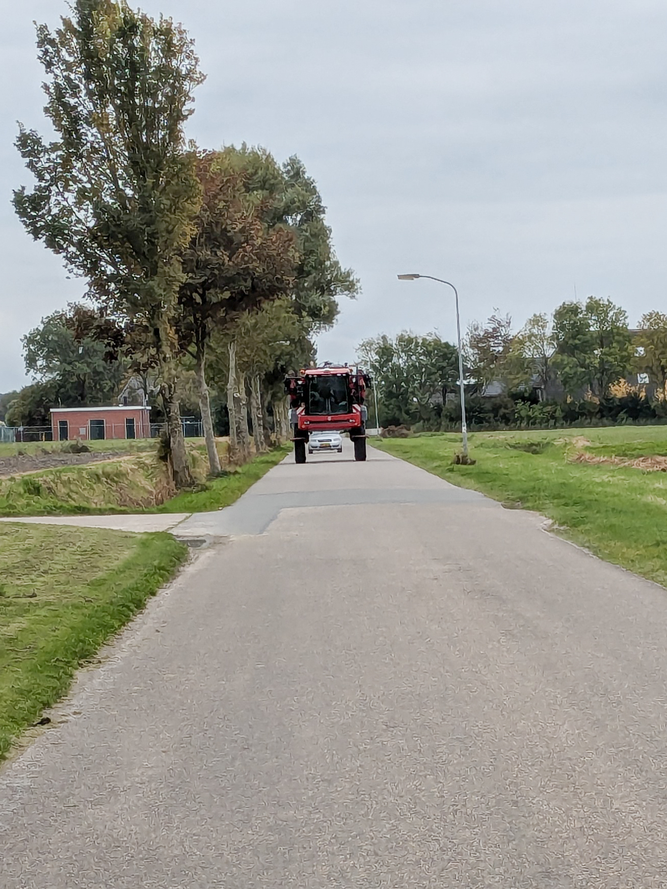 Via een parkje en een woonwijk komen we aan in Roodeschool, genoemd naar de oude dorpsschool uit 1830: inderdaad rood. En meer dan een eeuw de locatie van Nederlands meest noordelijke treinstation, totdat er in 2018 een verlenging naar Eemshaven werd aangelegd. Via de Tilweg verlaten we het dorpje wat door bijzondere bouwkeuzes erg rommelig aandeed. De kaarsrechte Tilweg gaat bij Oosternieland over in een kronkelender vervolg en brengt ons na het viaduct in de Eemshavenweg in Zijldijk. Dit is één van de vele lintdorpjes hier, die we verder in Groningen tot nu toe weinig aantroffen. Wel treffen we hier ‘bekenden’. Fokke en Kor van vanmorgen komen we hier tegen. Het gaat ons wederzijds goed af en we vervolgen onze weg.