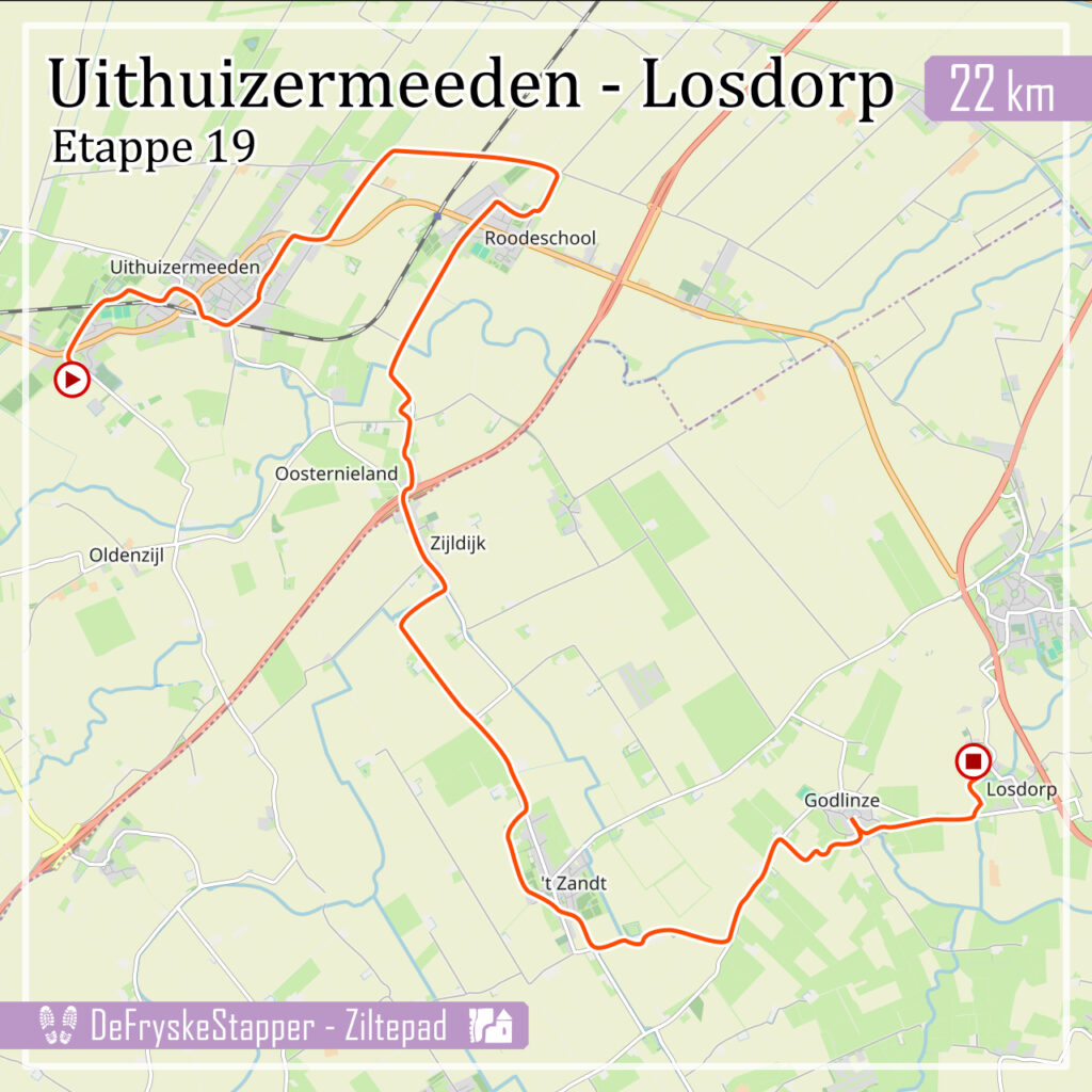 Na twee double headers hebben we vandaag weer een enkele etappe op het Ziltepad gepland. Vanwege het beperkte OV, en geen mogelijkheid tot carpoolen besluiten we de fietsen achterop te gooien en rijden naar de eindlocatie van de wandeling van vandaag: Losdorp. Aangekomen in Losdorp gaan de fietsen van de auto en de tassen op de rug. Dan komen er twee heren op leeftijd, duidelijk wandelaars, het zelfde straatje ingelopen. We raken kort in gesprek met Fokke en Kor. De één had al vele wandelingen waaronder in Spanje gemaakt. De ander wilde vanwege zijn gezondheid wat meer sportieve activiteiten oppakken. En samen hadden ze besloten het Ziltepad te starten. Voor hun de eerste etappe op hun tocht westwaarts richting Friesland en later misschien wel door. Maar alleen met mooi weer. Het moet wel leuk blijven.