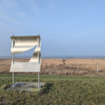 Na een paar kilometer mogen wij Westhoek rechtsaf en lopen we een kaarsrechte weg richting de huidige zeedijk. Bij een bankje en tevens kunstwerk zoeken we de zijde uit de wind en nemen kort plaats voor een theepauze (mét sûkerbôle). Wanneer we verder lopen besluiten we aan de zeezijde van de dijk te gaan lopen, waardoor we mogelijk wat minder last hebben van de gure Zuidoosten wind. Het is hier kaal. En fris. We zijn blij als we na een kilometer of zes opnieuw wat beschutting kunnen vinden bij het monument bij Zwarte Haan. Hier nemen we opnieuw een bakje thee.