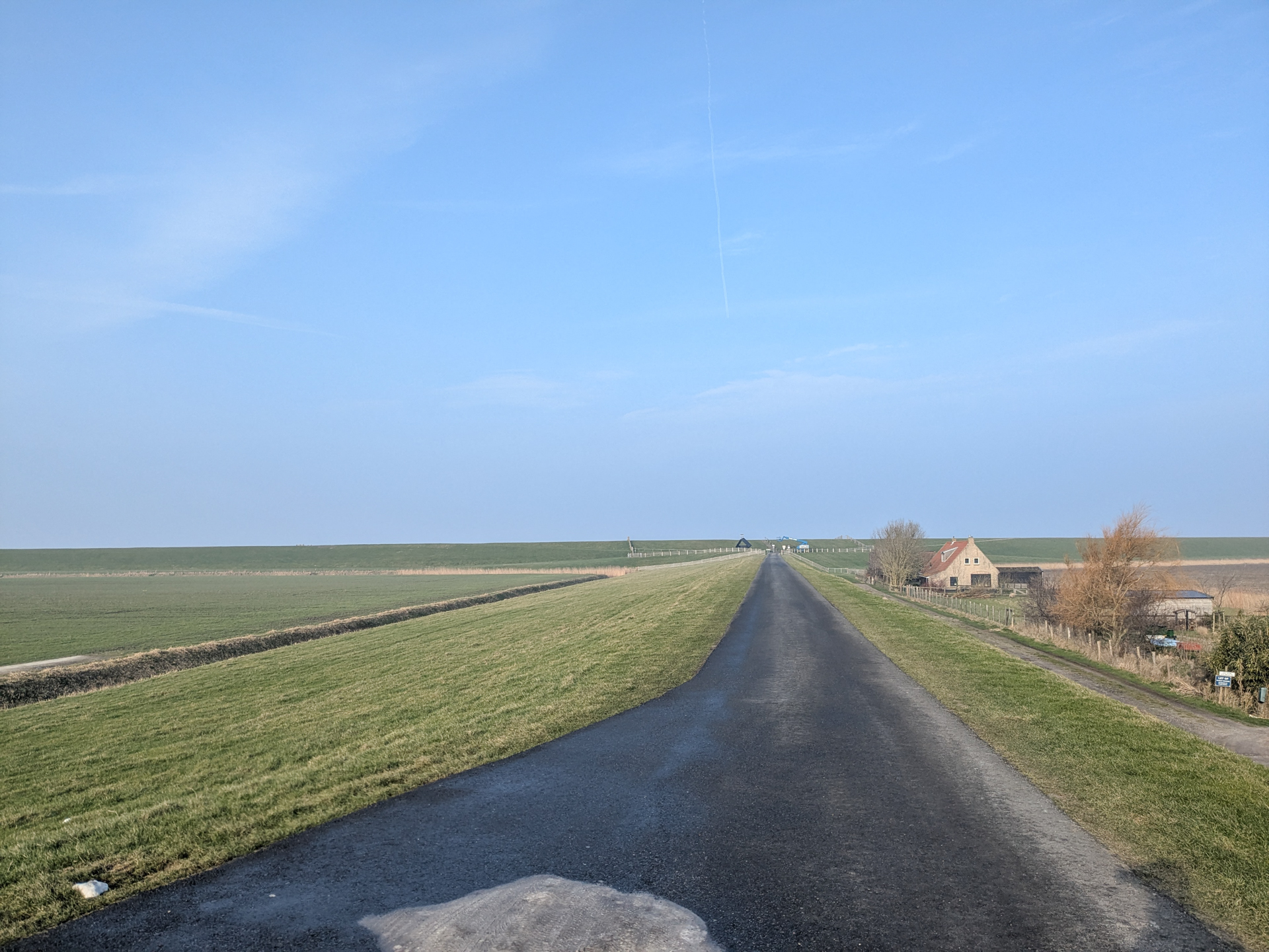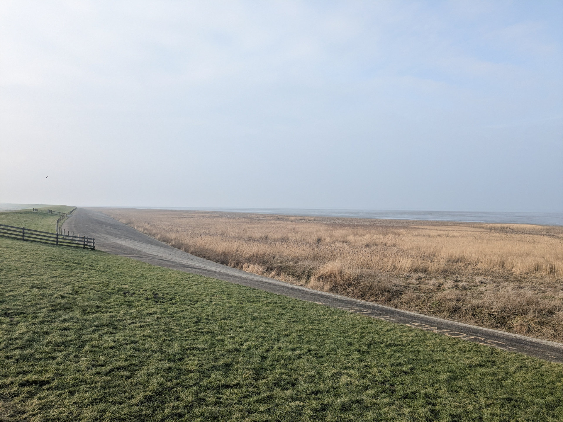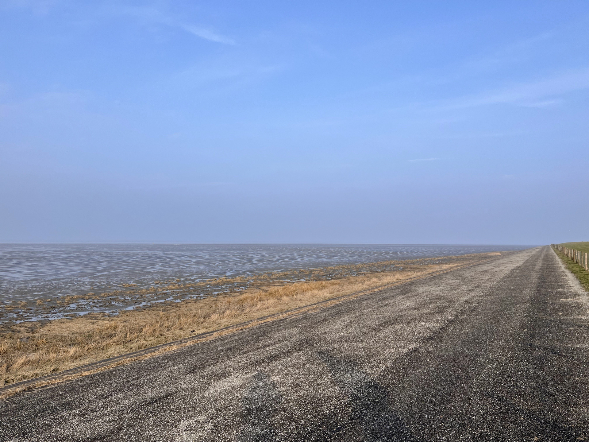 Dan volgt de laatste paar kilometers over rechte paadjes terug. Opnieuw via de Oude Bildtdijk, en dan de oversteek terug naar Sint Jacobiparochie. De stempel hadden we de vorige keer al opgehaald, dus we kunnen direct de auto inspringen.