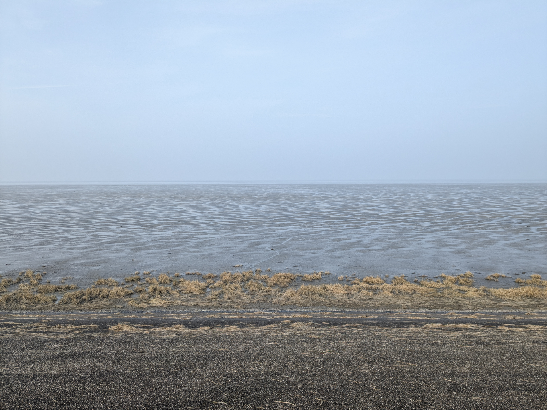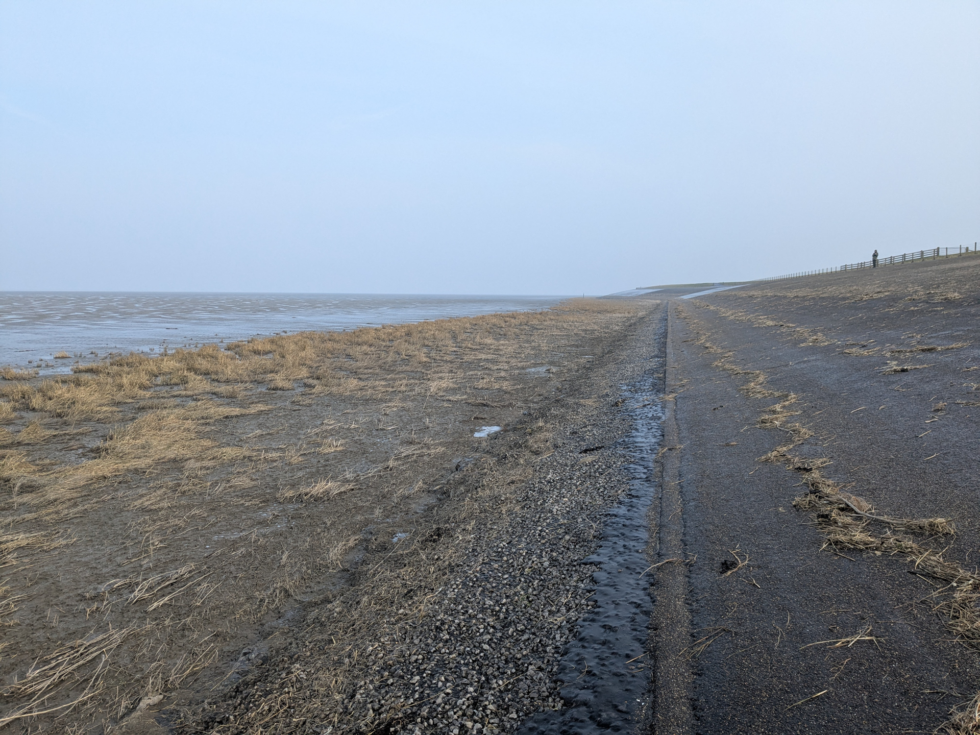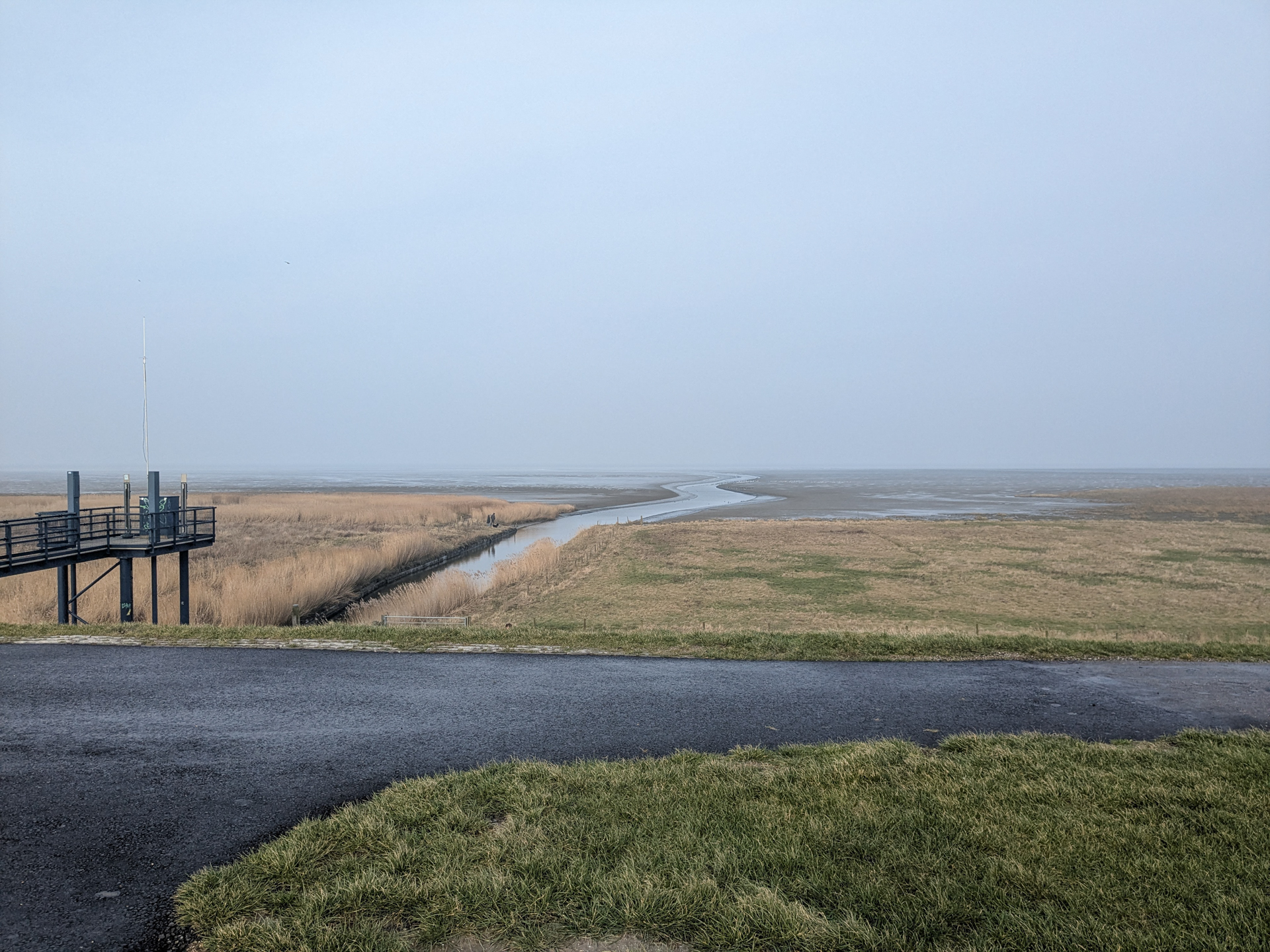 Dan volgt de laatste paar kilometers over rechte paadjes terug. Opnieuw via de Oude Bildtdijk, en dan de oversteek terug naar Sint Jacobiparochie. De stempel hadden we de vorige keer al opgehaald, dus we kunnen direct de auto inspringen.