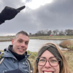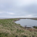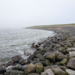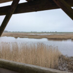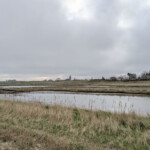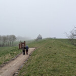De route wijst ons vanaf de kerk westwaarts het dorp uit, en dan direct noordelijk richting de zeedijk die hier op slechts een paar honderd meter wandelen ligt. Via de Molgerdijk lopen we rond de Kleiput Vatrop; een binnendijkse poel waarin een hoop watervogels bivakkeren. Op dat moment begint een voorzichtig zonnetje door te breken. Dat gaat de goede kant op met het weer. De vorige wandelingen hadden we al genoeg bewolking en mist gezien. Tijd voor mooier lenteweer.
