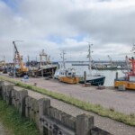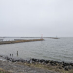 Dan komt de haven van Den Oever in beeld. De zeedijk gaat hier over in een recent vernieuwde kade inclusief grote sluisdeuren die het dorp moeten beschermen in tijden van hoog water. Langs de haventerreinen met loodsen en vissersboten komen we aan bij een fietserstunnel onder de snelweg A7 door, net voorbij de het sluizencomplex van de Afsluitdijk. Hier zijn we al talloze keren overheen gereden met de auto, vanuit Friesland naar bijv. Amsterdam, Hoorn of Alkmaar, maar nooit eerder liepen we hier. We komen aan aan de kant van het IJsselmeer.