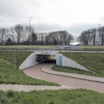 We zijn nu op het verste punt vanaf het startpunt. De terugroute start hier bovenop de met gras beklede IJsselmeerdijk. Via opstapjes steeds over de stalen hekken, de schapenschijt ontwijkend, en een paar honderd meter verderop opnieuw een hekje. Zo lopen we in een kilometer of vier terug naar de zuidelijke havens bij Den Oever. Opnieuw ten hoogte van het Gemaal Leemans, lopen we nu via een fietstunneltje terug de A7 onderdoor.