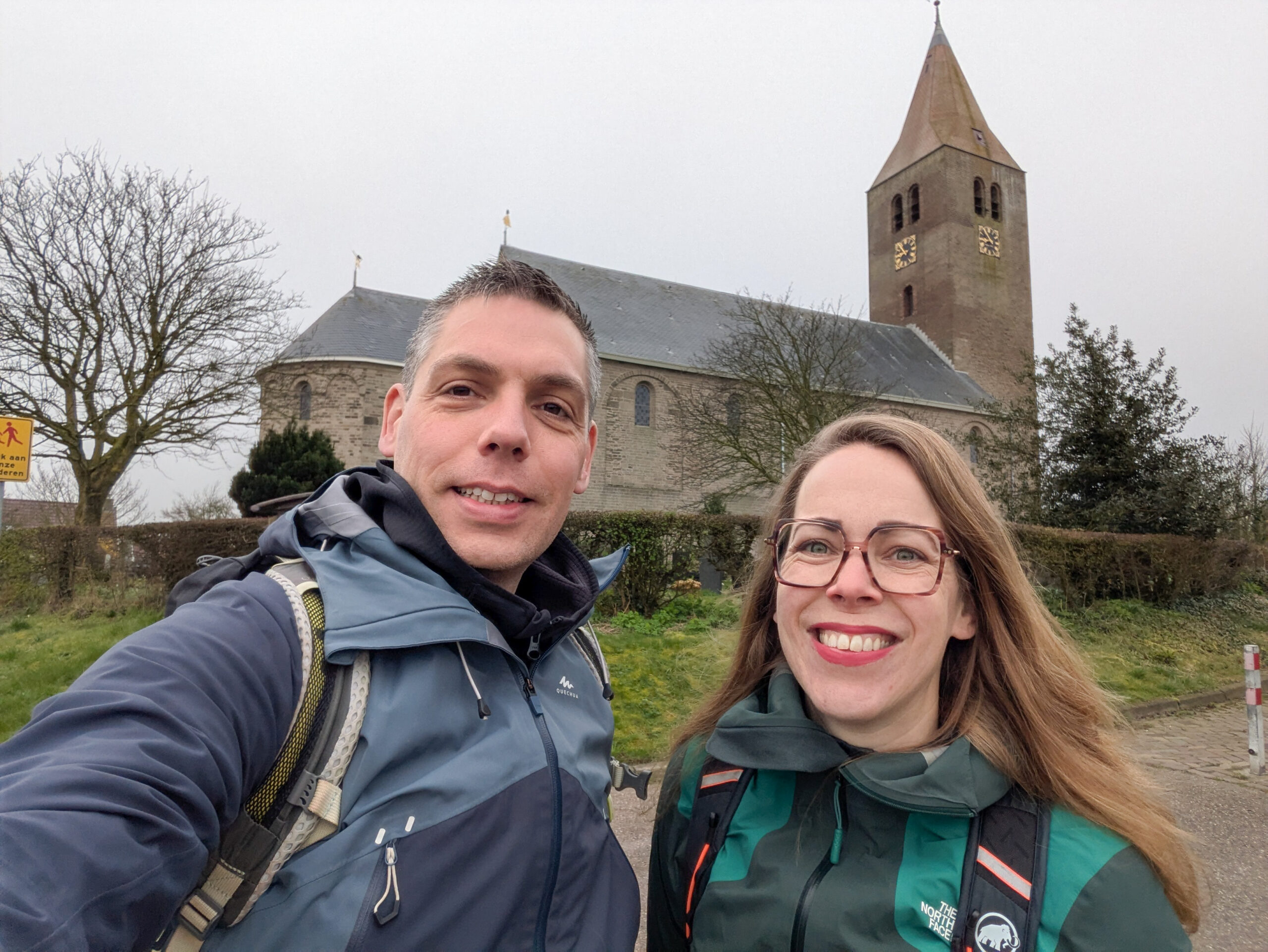 Vanaf Bolsward carpoolen we in een half uurtje de 32,5 kilometer lange Afsluitdijk over, die we ooit dus nog als afsluitende etappe van het Ziltepad zullen gaan lopen. Maar vandaag staat de rondwandeling van Oosterland, etappe 7, op de agenda. Na een flink bewolkte rit rijden we het Noord-Hollandse Oosterland binnen. Net voorbij de Michaëlskerk vinden we een parkeerplaats en trekken de wandelschoenen aan. Negen uur in de ochtend. Wij zijn er klaar voor.
