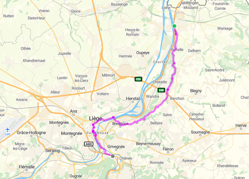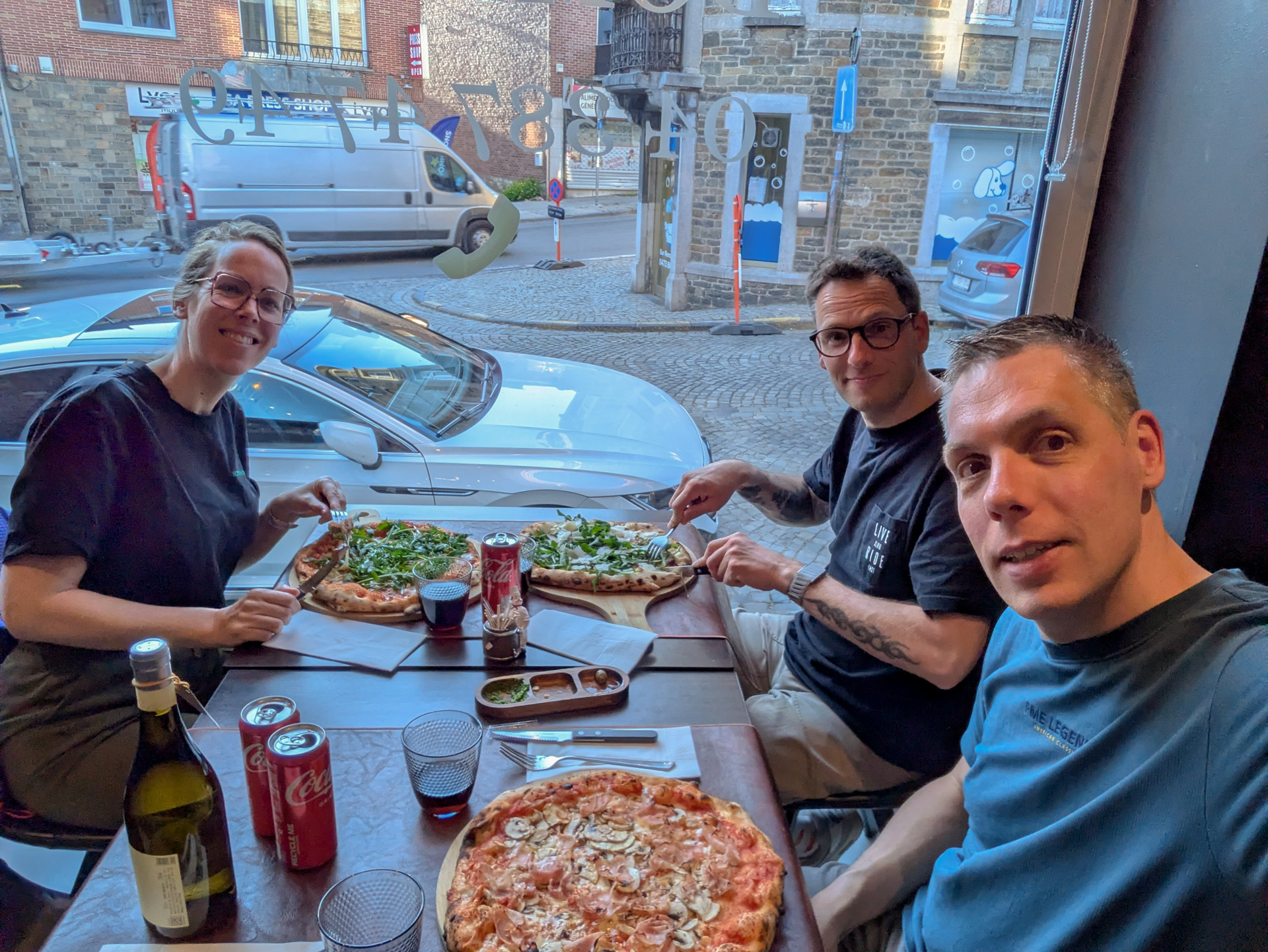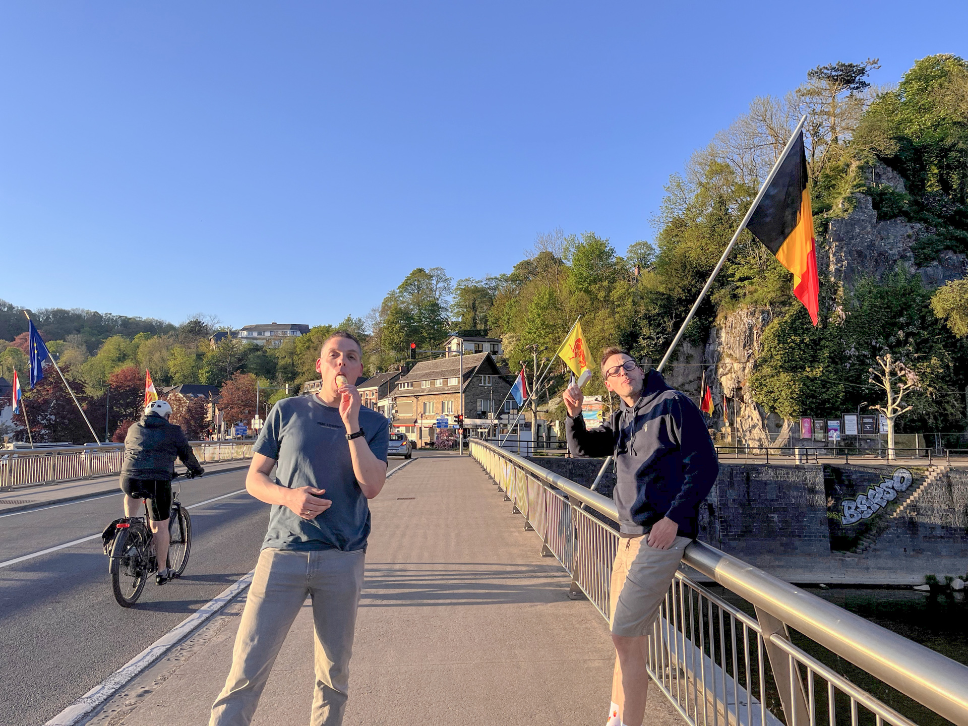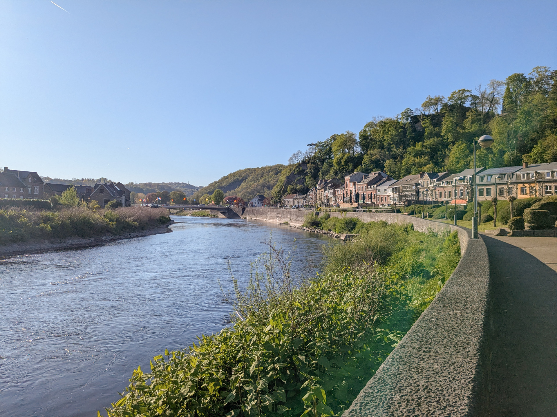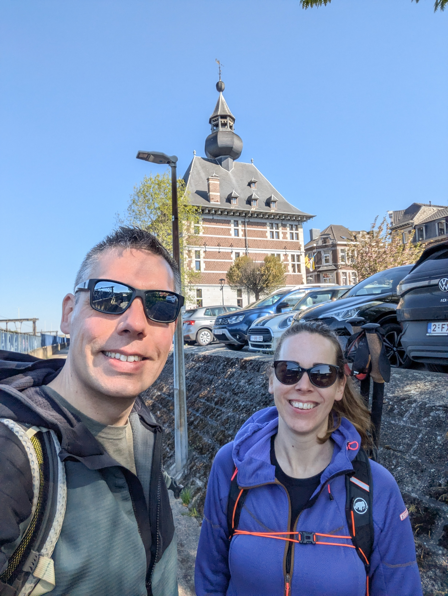 Vanuit Joure carpoolen we in drie en een half uur rustig naar België. Het is een doordeweekse woensdag. Rond de ochtendspits bij Arnhem is het iets drukker, maar verder rijd het prima door. Visé is het eerste stadje over de grens en we nemen de afslag. Vanwege een markt moeten we een stukje omrijden en komen dan aan bij het treinstation. Baudien en ik stappen uit en zullen vanaf hier al wandelend verder gaan. Jorrit rijdt alvast naar het vooraf geboekte huisje verderop in Esneux en zal daar vandaag gaan fietsen.