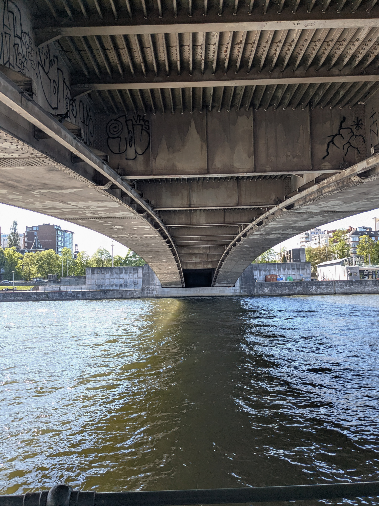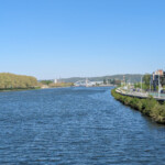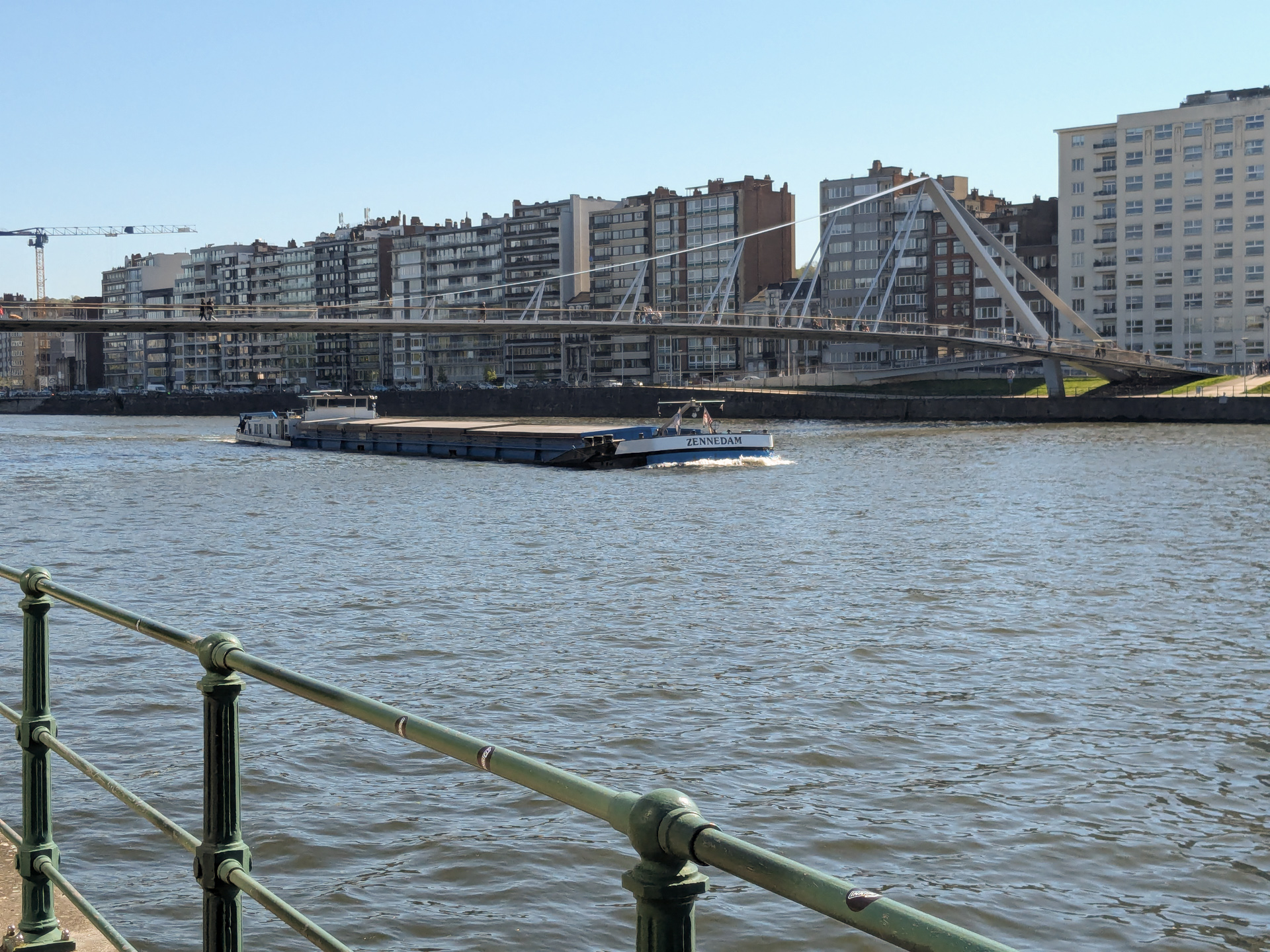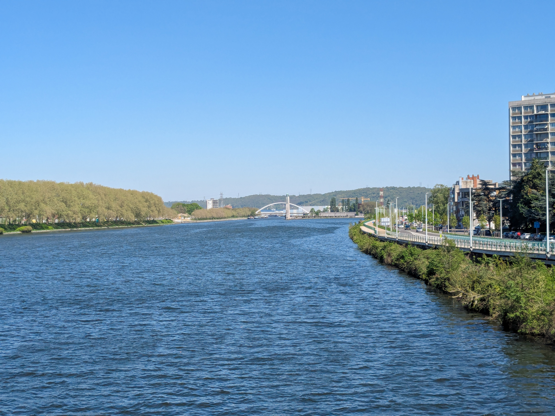 Aan deze kant van de stad zien we nette huizen, nette straten en onderweg wordt opnieuw best veel gebouwd. Langs het station van Bressoux komen we aan bij de Maas. Over de Pont de Atlas steken we de rivier over die hier wel een meter of 200 breed is. Langs de noordkade van de Maas lopen we richting het centrum van Luik. Ook hier is men de afgelopen jaren flink bezig geweest met opknappen. Nieuwe trambanen en stations, nette fietspaden.