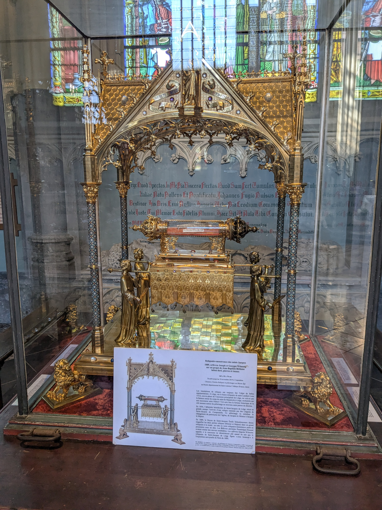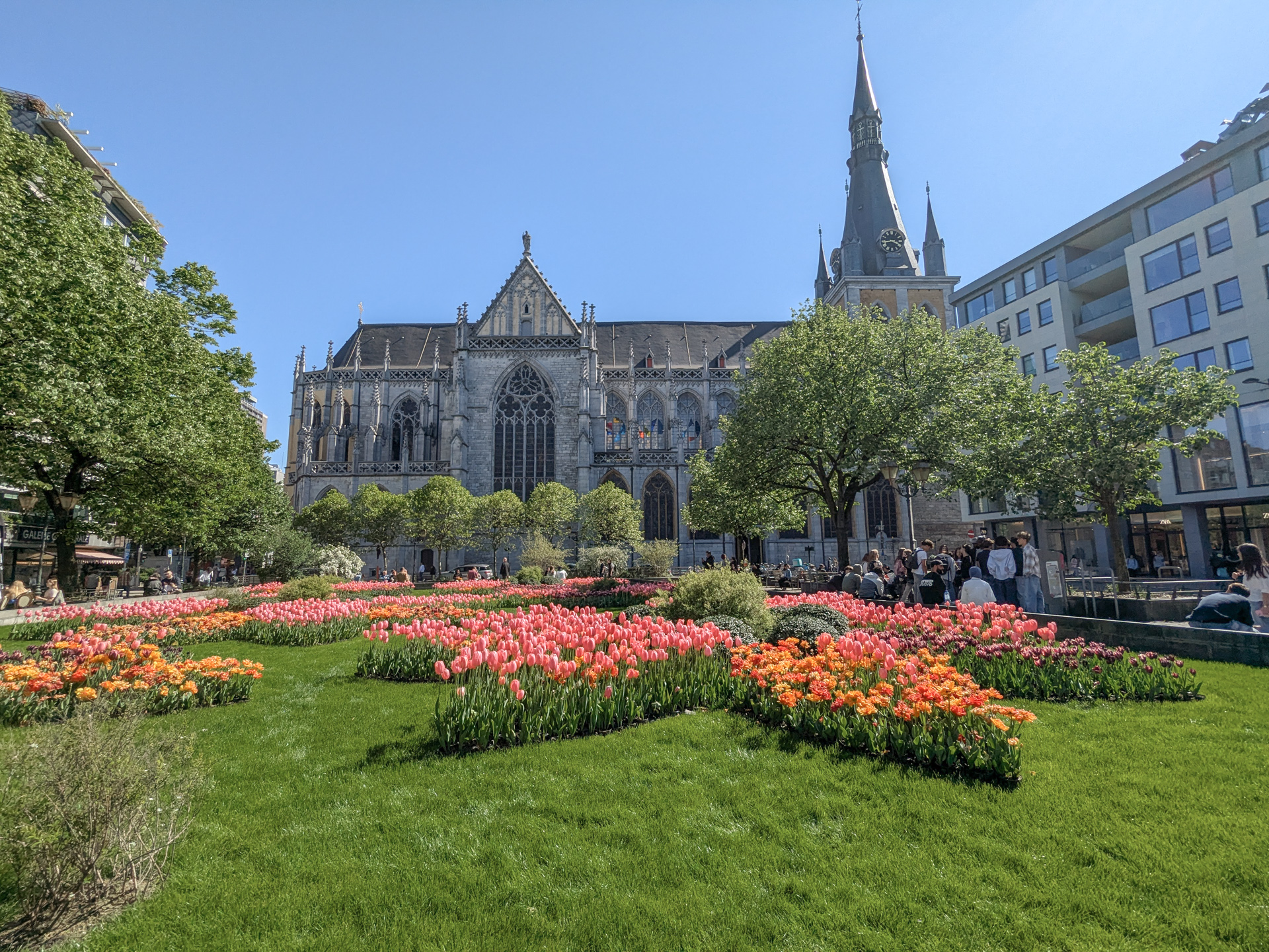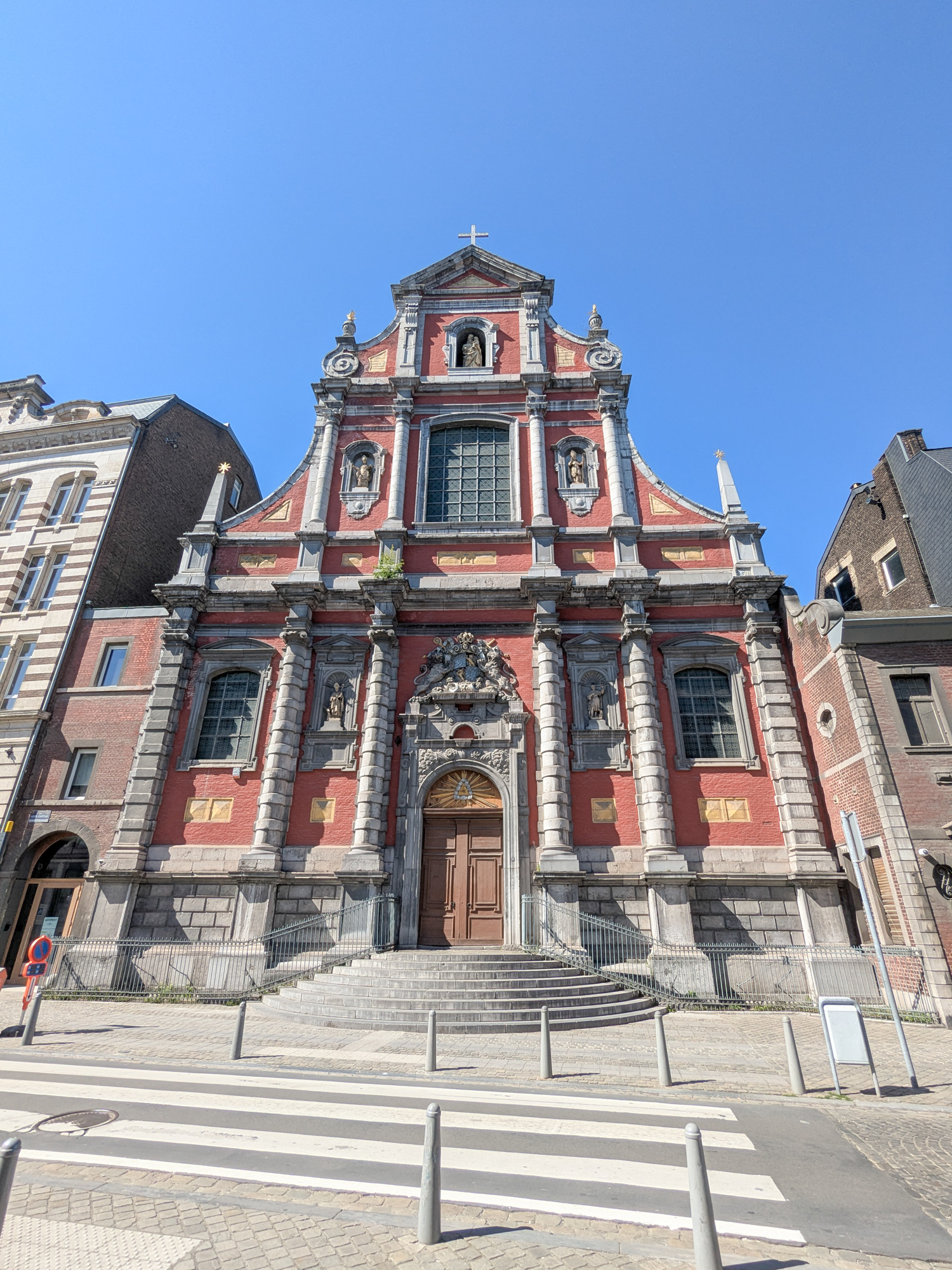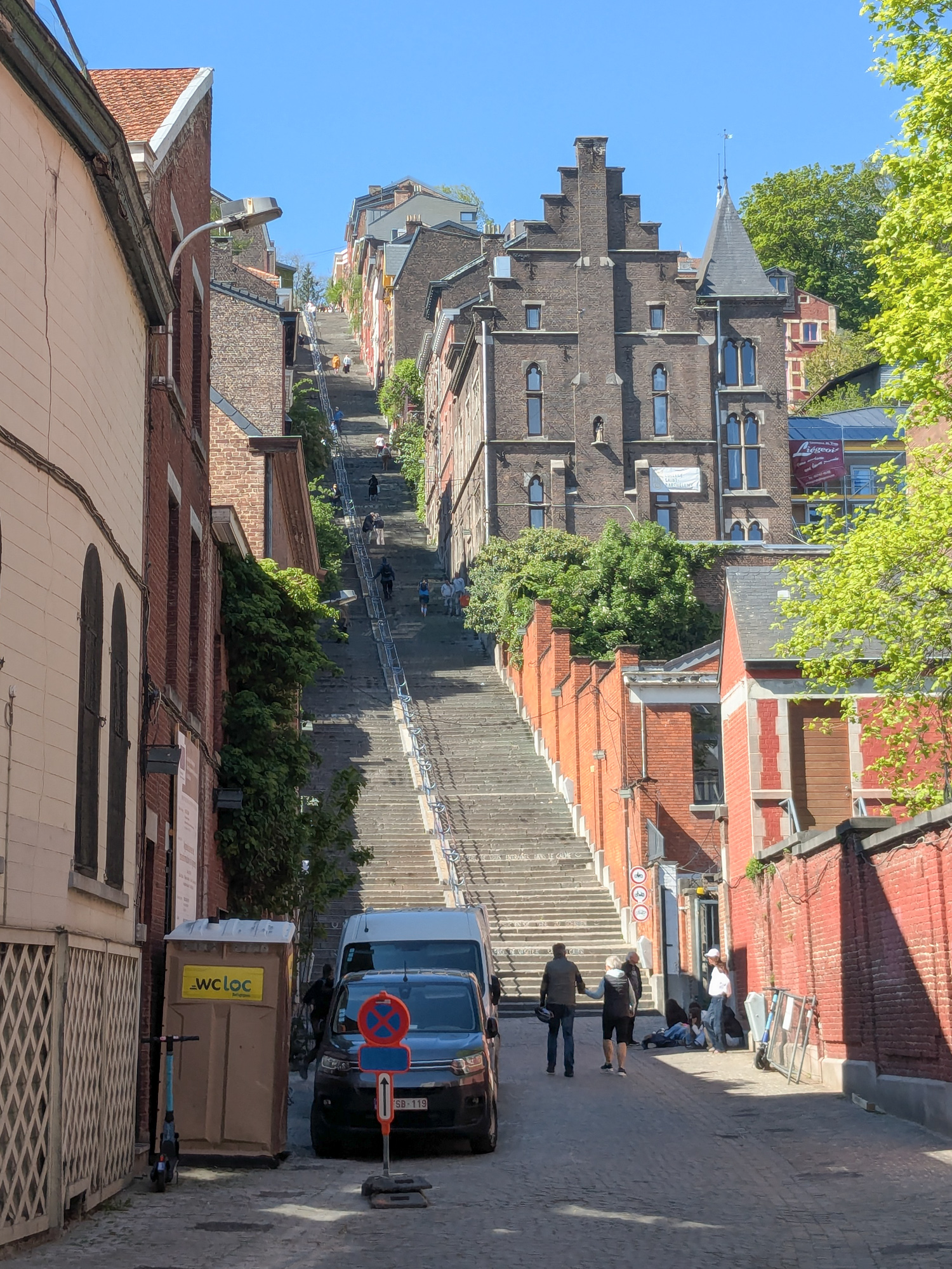 Ter hoogte van de volgende brug trekken we wat verder het centrum in. We komen o.a. langs de beroemde Montagne De Bueren: de oneinde trap richting de Citadelle bovenop de berg. Die stappen slaan wij over, en via het drukkere toeristische centrum lopen we richting onze eerste mogelijke stempelplaats: de Sint Pauluskathedraal. Totdat Baudien ingrijpt. We zijn in Luik. En we lopen langs een boulangerie (bakker). Dat kan maar één ding betekenden: een Luikse wafel scoren!