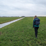 Via een een klein stukje woonwijk verlaten we Winsum en komen we op het wandelpad langs de vaart te lopen. Onder een viaduct in de Westergoawei door en dan na een paar kilometer lopen we aan de rand van Easterlittens. Ook hier zou een stempelpost moeten zijn. Maar een korte zoekopdracht op internet wijst uit dat deze vandaag gesloten is. We laten het dorp letterlijk rechts liggen. Een aardige jongedame die haar hond uitlaat is erg geïnteresseerd in onze wandeling. Na een korte babbel vervolgen we onze weg en lopen noordelijk langs de Boalserter Feart.